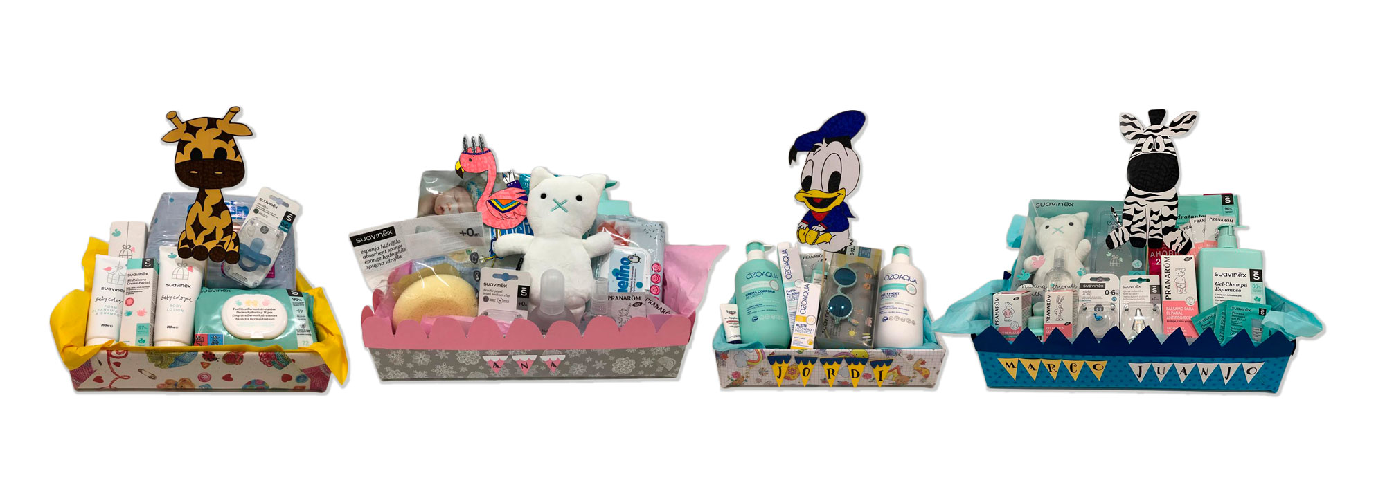 Si quieres tener un detalle con alguien, ofrecemos un servicio especial de cestas personalizadas acoplándonos a los gustos y necesidades de cada uno, así como al presupuesto disponible. Las hacemos tanto con productos que va a necesitar el bebé como con productos de primera necesidad para la nueva mamá, en función de para quien sea el regalo. No dudes en consultarnos, ¡aquí tenemos lo que necesitas!